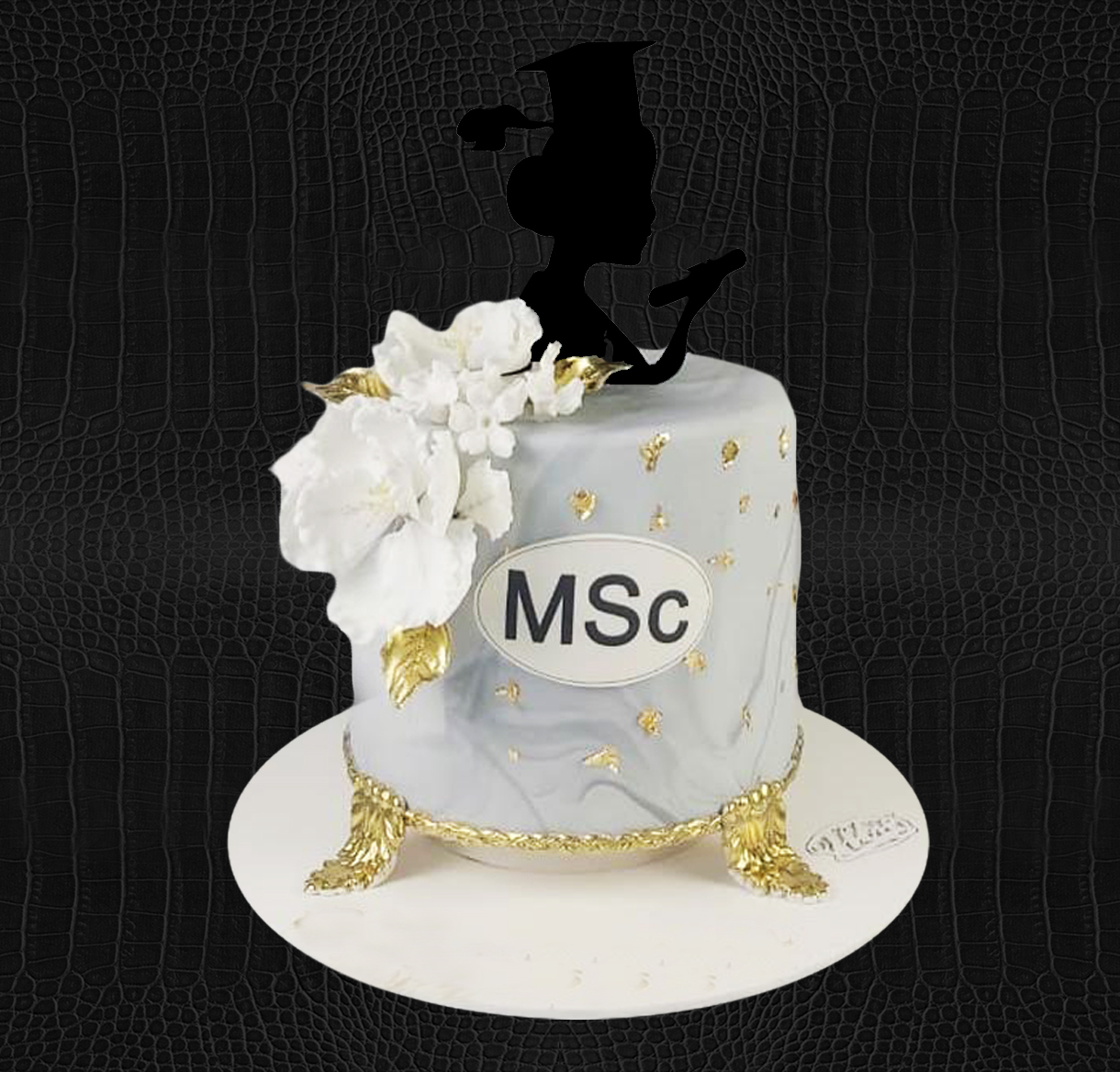 Graduation Girl Cake –  Cake size 25cm diameter and height 15cm(8cm cake + 7cm decoration base. Graduation girl acrylic topper.