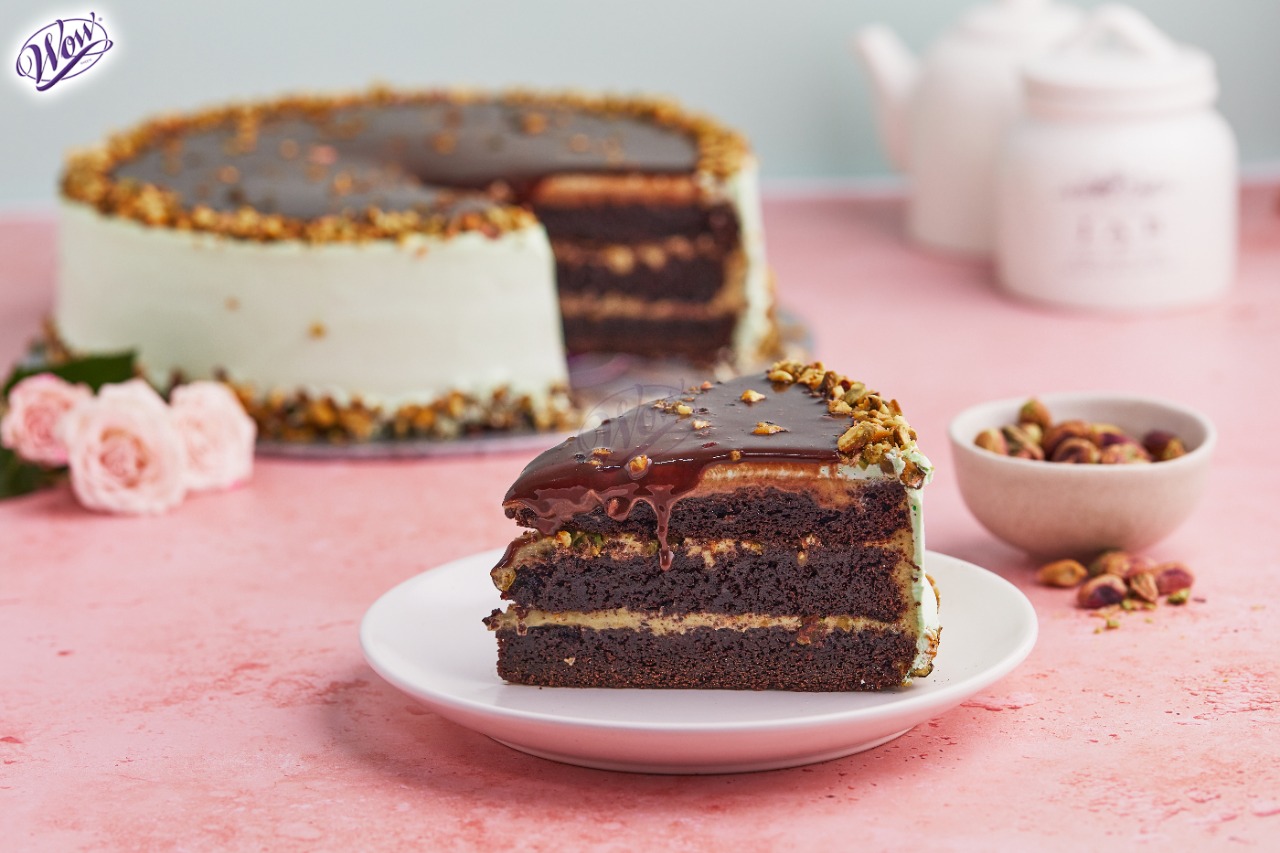 Chocolate Pistachio Sponge With Pistachio Mousse.